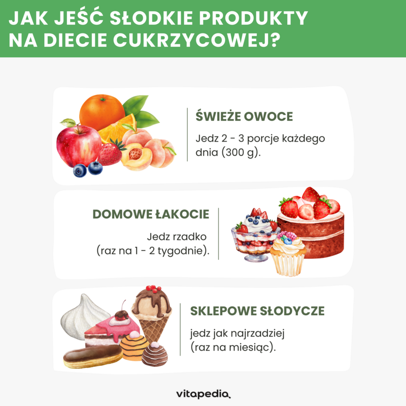 Warto jednak pamiętać, że dieta cukrzycowa nie musi być zupełnie pozbawiona słodkiego smaku. Oto najważniejsze wskazówki dotyczące umiejętnego i rozważnego zarządzania produktami będącymi źródłem cukrów prostych: