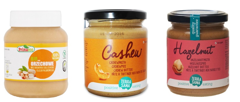- Za najlepszy produkt uznaliśmy ex aequo: Primaeco - Bio pasta orzechowa 100% orzechów 350 g, TERRASANA - Masło z orzechów nerkowca BIO, TERRASANA - Masło z orzechów laskowych BIO